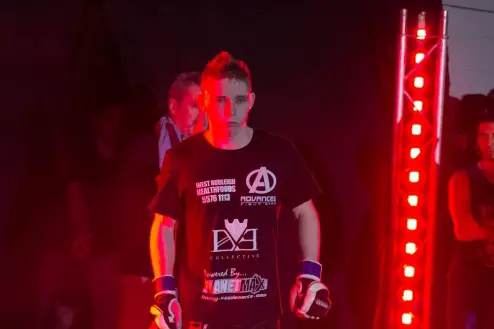 Ryan Gray from The MMA Clinic in Western Australia put on an impressive performance and finished it with style as he took on Quentin Taylor from Advanced MMA. Taylor made his intentions clear early as he shot in straight away for a takedown only for the attempt to be defended by Gray. Gray then came forward with nice combination of punches before Taylor caught a leg-kick to get the fight to the ground. From there though it was Gray who controlled the fight, attacking immediately off his back with a triangle and then a armbar. Gray escaped to his feet and connected with more shots on his feet. Shortly after a nicely timed flying knee from Gray dropped Taylor and he was able to pounce, finishing the fights with a couple of punches on the ground. The end came at 2:34 of the first round. The spectacular finish gained Gray Knockout of the Night honours.