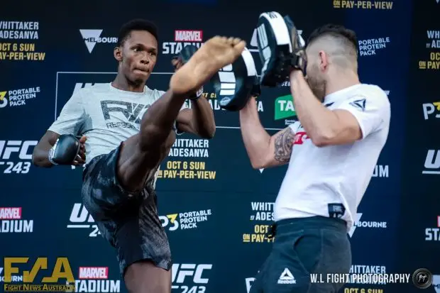The UFC 243 open workouts took place at Federation Square in Melbourne on Thursday afternoon. Team-mates Dan Hooker and Israel Adesanya, as well as Justin Tafa, Tai Tuivasa, Al Iaquinta and a fired-up Robert Whittaker all participated in the event.