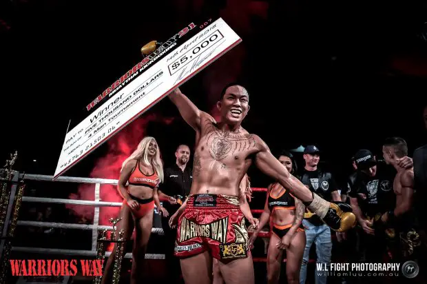In the night’s semi-main event Iwan Jones squared off against Quan Trinh from the 8 Blade Warriors gym in Melbourne’s West. Training alongside the likes of Alexi Petroulias, Chris Nguyen and Alex Ilijoski, Trinh came into the bout well and truly prepared and despite a slow start, eventually found his rhythm. Despite the height and reach advantage going the way of Jones, Trinh looked incredibly composed and calm throughout the bout in which his main focus of attacks was the lead leg of Jones. With Jones searching for an elbow late in the fight, it was the continual punishment of the lead leg with kicks that wore Jones down and gave Trinh the comfortable points decision on the judge’s scorecards.